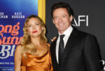 Fashion time! At the premiere, Kate had crimped hair and wore a silky gown in a beautiful amber color that’s perfect for fall. Danny was equally representing fall in a brown pinstripe suit. I will never not love bold, colorful clothing, so I think they both looked great. Hugh Jackman was also there with Sutton Foster. I didn’t realize this, but it was their first time walking the red carpet as an official couple. They kept their style pretty basic, with Hugh wearing a simple black suit and Sutton in a black slip dress that looked so similar to her dress from last week’s Fetch Pet Gala that I had to double-check that it wasn’t the same one (that dress was strapless). She looked very nice, but it was kind of boring.