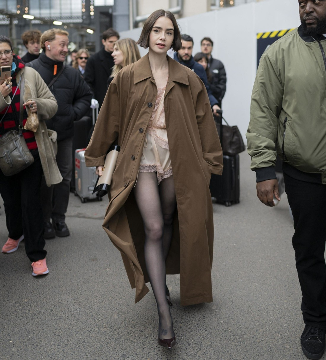 Saw Lily in an AMAZING black suit/coat dress with a deep v-neck and incredible tailoring the other day when she was also doing train promo. It was posted on her instagram 2 days ago. Love it so much, unlike this look!