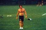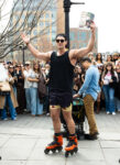 The ‘biggest hunk’ sported blackout shades and a backward hat, along with a tank top, shorts, and bright orange rollerblades.