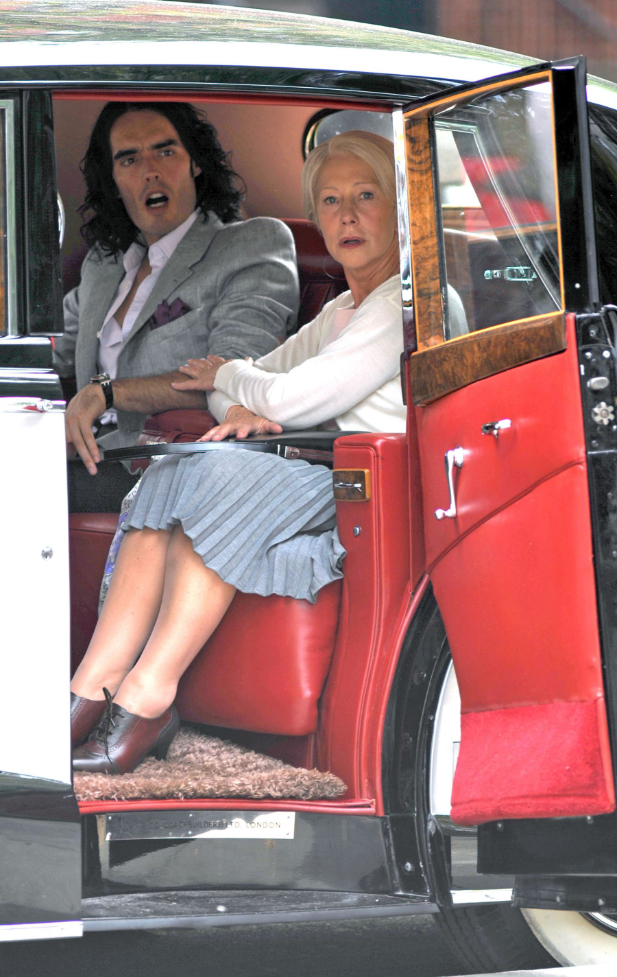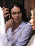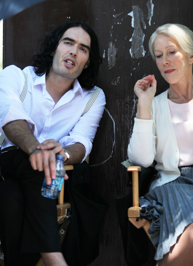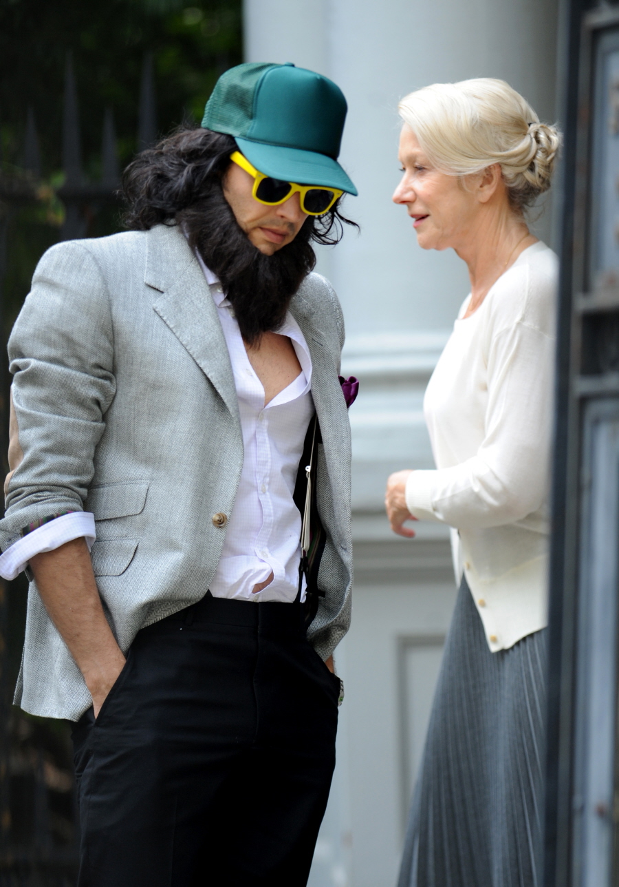 Helen and Russell filming ‘Arthur’ on July 12, 2010. Credit: Bauer-Griffin, Fame & WENN.