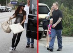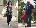 Here’s Sandra getting bread yesterday, 8/25. She’s also shown with her bodyguard on 8/24 and picking up dry cleaning on 8/22. Jesse and his daughters Sunny, 6, and Chandler, 15, are shown on 8/25 and Fame did a split photo thing, but they were “miles” away from those other photos taken of Sandra. It’s not like they were nearby. Credit: Fame Pictures