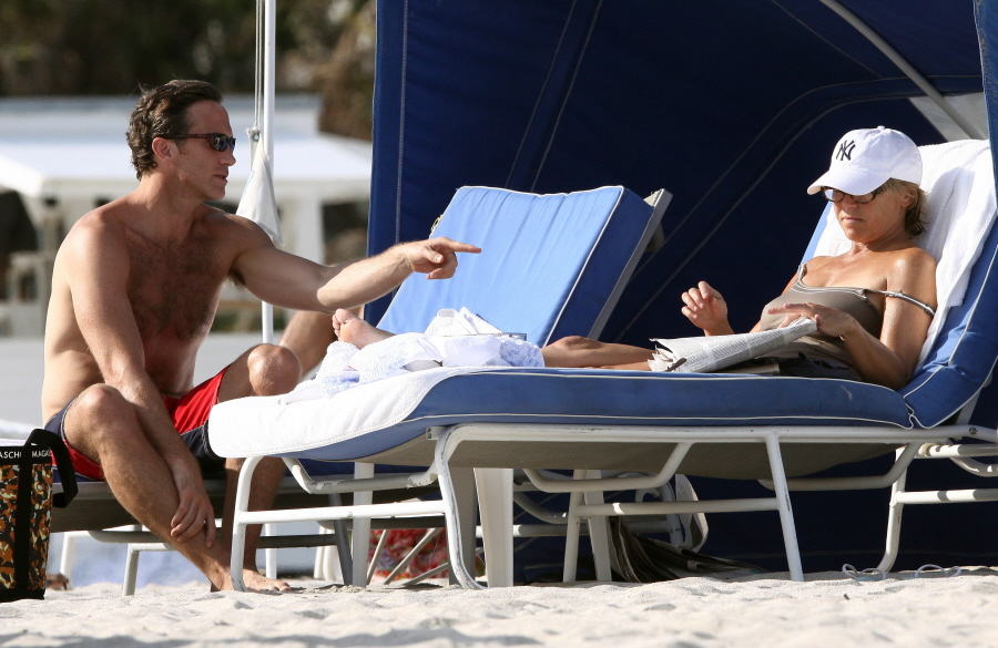 I don’t keep up with Katie Couric news, so I still kind of thought she was still dating that musician guy… what was his name…? Chris Botti! That took way too long to find. Anyway, Katie has apparently been dating this new-ish guy for a while. His name is Brooks Perlin, and they’ve been together for a while now. These are photos of Katie and Brooks vacationing together in Miami. I guess Katie doesn’t feel the need to go to Egypt and do a live news show from there? Bitch is on vacation!