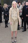 As I’ve mentioned before, there are few fashion houses that I think more highly of than Burberry. I absolutely love with Christopher Bailey has done with the label, but all great men have an Achilles’ heel. Bailey’s problem is that every talentless toothpick wants to wear Burberry, and they want to come to the shows too. I give a pass when it’s someone like Sarah Jessica Parker – for all of SJP’s faults, she loves fashion, and she knows a lot about it. But when the biggest “name” you’ve got at a Burberry show is KATE BOSWORTH, there are problems. Significant problems. Huge problems. Anyway, these photos are from outside of today’s Burberry show in London (it’s currently London Fashion Week). The Bos is wearing Burberry, of course, on her slouchy, emaciated body. And I don’t care that so many of you disagreed with me last Friday – I still think the bitch is jacking her lips, Lohan-style.