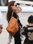 The twins look a bit grumpy (possibly baby jet lag) but they are adorable. Zee is so cute with her jeans and Pax w/ his briefcase is killing me. Maddox is such a little man now but where’s Shi I think she outran the paps 🙂