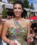 These are photos of Kim Kardashian from an event in Las Vegas over the weekend. Kim’s dress is by Mara Hoffman, a designer I am unfamiliar with. It’s not bad… considering Kim has crappy style and a penchant for high-waisted vagina drape pants and unflattering Bermuda shorts. Of course, she still doesn’t look like a Size 4, you know?