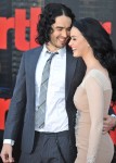 Russell Brand and his two lady lovers were at the London premiere of Arthur last night, but Rusty was bad (so bad) and he only posed with one of them. After months of taunting us with their deliciously inappropriate cougar-cub hotness, Rusty seemed to avoid Dame Helen Mirren like the plague on the red carpet. Instead, he focused on his wife, Katy Perry. I imagine that Katy made him promise to stay by her side all night, and ignore “the other woman.” Rusty obliged – and he actually looks totally enamored with his wife, which just makes me sad (because I don’t think it’s going to last).