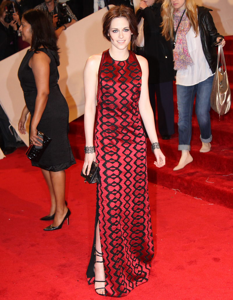 As was mentioned in a previous post about Rob Pattinson being more relaxed on the red carpet when it’s got nothing to do with Twilight, I think this is the same for Kristen. They’re both starting to see the light at the end of the Twilight tunnel (to quote you Kaiser) and I bet they’ll both be happier for it, too. Kristen looks lovely, and the dress suits her image: a little different, a little uncompromising and uncomfortable, but still noteworthy.