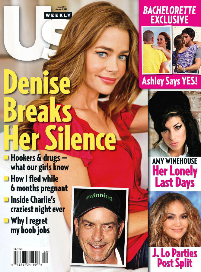 Denise Richards is on the cover of US Weekly promoting her new memoir, The Real Girl Next Door. They have excerpts from the book along with an interview with Denise. As she’s done all along, Denise remains very classy about her ex, Charlie Sheen, and refrains from trashing him. She even says that she’s not going to cut him out of her daughters’ lives and is working to make sure they have a good relationship with their father. Denise finally gives her side of the story on Charlie’s infamous NY hotel freakout on a porn star/hooker, when she was staying across the hall with her daughters and a nanny. It’s not very salacious, though, and just gives Denise’s take on that night and how it affected her. She doesn’t even speculate on what the hell Charlie was thinking, nor does she say one bad word against him. You can tell she was embarrassed, though, and that it wasn’t easy for her to have dinner with a bunch of hookers that night.