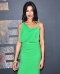 Does the camera love Freida Pinto or what? These are new photos of Freida (and Dame Franco) at last night’s Hollywood premiere of Rise of the Planet of the Apes. Frieda wore this interesting green dress by Juan Carlos Obando. The shoes are Brian Atwood. As a fellow Indian girl with similar coloring, I have to admit that I’m surprised she looks so good in this shade of green. This shade is difficult when you’re darker and your skin has yellow undertones – I think I would probably look sickly in this shade, but Freida really pulls it off. Her hair, especially, looks great and that face…! I love her. I want her to do well and make good movies. I want her to not be a brat. Fingers crossed.