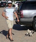 Here’s Gerard Butler with his longtime girl, Lolita. Lolita is the tiny little pug, by the way. Isn’t she cute? I’m not sure about the name “Lolita” for a tiny little dog whose daddy is a notorious womanizer, but sure. He loves that puppy, and Lolita gets lots of quality time with her dad. Speaking of, The Enquirer’s gossip guy, Mike Walker, had this funky little story about Gerard and Lolita is bed together: