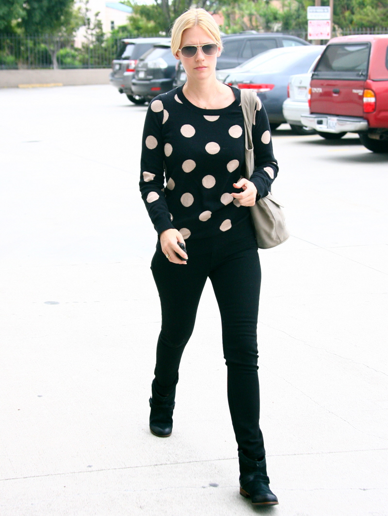 Here are some new photos of January Jones and her baby Xander, who is being carried by a nanny. Because apparently January doesn’t want to be photographed holding her own baby. That’s like something Goop would think up, honestly. Or maybe January doesn’t want to be photographed with Xander because she knows that it will only spur more speculation as to the baby daddy?