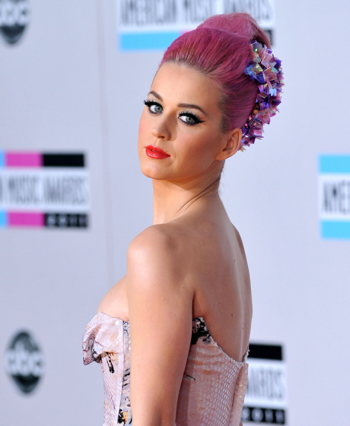Nice dress but Katy, enough with the girly pink hair already. You’re starting to look like you’re trying too hard. Besides, your roots are showing.