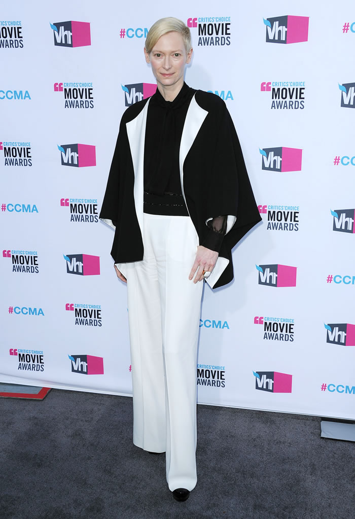 Naturally, Tilda is all class here, and I completely believe her claims of not being disappointed about the lack of Oscar nomination (whereas if George Clooney had said the same thing, I’d think he was entirely full of crap). Lots of people thought Tilda would be a lock on every Best Actress award this season, and it is surprising that she’s been overlooked in favor of Mara Rooney’s lackluster turn in Girl with the Dragon Tattoo. I mean, please.