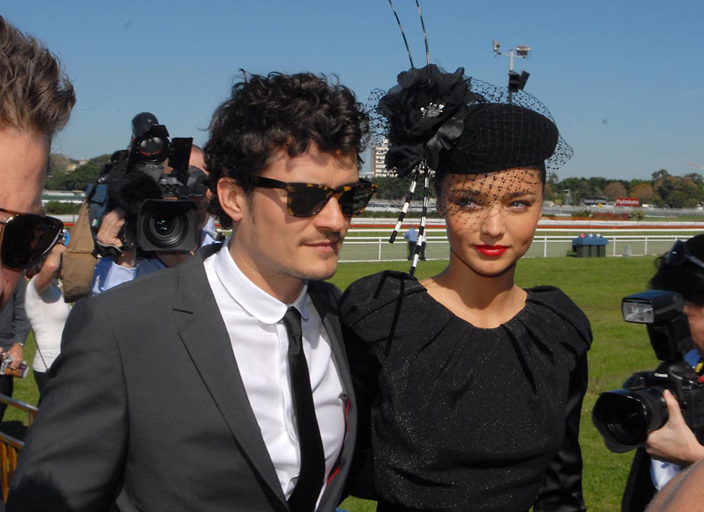 Picture note by Celebitchy: Here are a bunch of photos of Orlando Bloom at the airport on 10/4/08. They include pictures of him lifting up his shirt as he passes through security, which I know Sammie will appreciate. Credit: Bauergriffinonline. Orlando Bloom and Miranda Kerr are shown at their first public appearance together, at the Australian Derby in Sydney, on 4/26/08. Credit: IKON/Fame Pictures