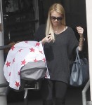Here are the first photos of Charlize Theron and her baby, Jackson. Except you can’t really see Jackson at all. According to Fame/Flynet, Charlize stopped by the post office to order a passport for Jackson, and she “kept her son under wraps the whole time, in a blanket covered carrier as she went in and out of the post office.” So he might not even be in there. If this was Beyonce we were talking about, I would say the “empty carrier” theory was a solid possibility, but in Charlize’s case, I think Jackson is actually in there. He’s already a little star, blanketed in stars, carried by a star. Sidenote: I wouldn’t mind having that blanket in a larger size! That’s really cute.