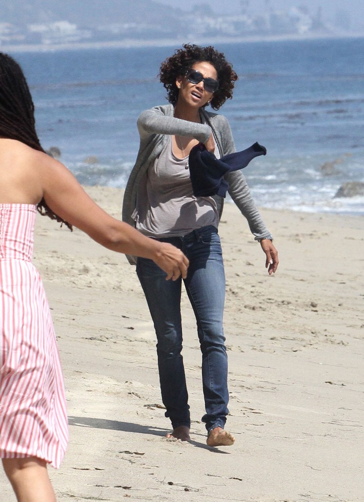 Which version of Halle’s hair is your favorite? I think she looks best with the mid-level curls, in the beach photos. Maybe I’m getting confused because the wind is blowing it back, and/or humidity is making her hair curl up tighter. She possibly has the same hair in both of those photosets, but I doubt it. I like her with the short spiky hair too, it really highlights her face. She’s looking a little Botoxy lately, so perhaps a softer longer style is a better choice. Her hair reminds me of Rihanna’s two-tone curly hair, the style she had during her raucous Hawaiian vacation. If all I saw in those photos of Halle picking up Nahla were her hair and outfit I would have assumed she was Rihanna. Check out this picture in particular:
