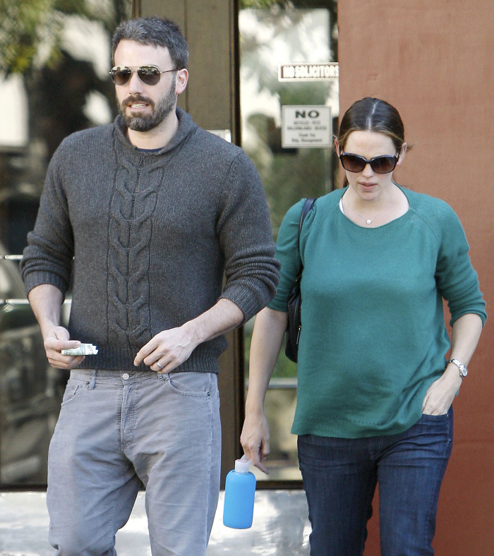 Ben Affleck and Jennifer Garner are still glowing over the birth of their third child (and first son), Samuel Garner Affleck. Sam was born in late February, and since then, Jennifer has made some public outings and such, but these photos are some of the first I’ve seen of Ben and Jen together since Sam was born. During Jennifer’s pregnancy, Ben was uncharacteristically and publicly affectionate with Jen, which led some people to think that he was and is super-happy to finally “get the boy.” These photos are of Ben and Jen leaving a doctor’s office in Santa Monica yesterday – probably just a checkup for her, I’m guessing. It’s nice that Ben is still being attentive to her.