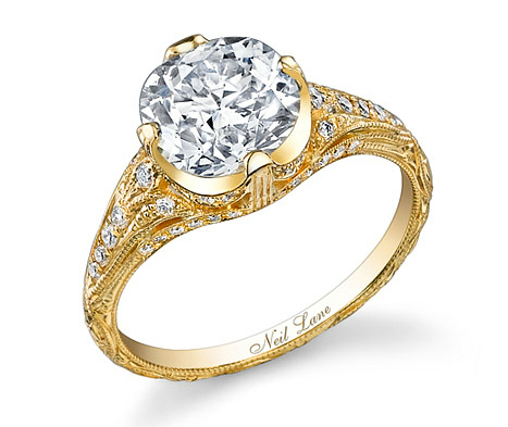 I think the ring is gorgeous! Looks like an antique setting. The only thing I would have done is put it in white gold, of course I think that about most engagement rings. I hate yellow gold and diamonds together. Nonetheless, I think it’s one of those beautiful settings that will age very well.