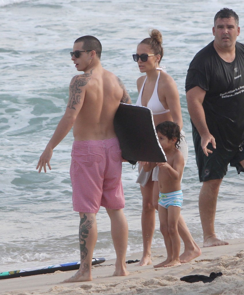 These are photos you’re already seen of Lopez performing in Brazil on 6-27-12 and also on the beach with Casper and her kids on 6-25-12. Credit: PacificCoastNews