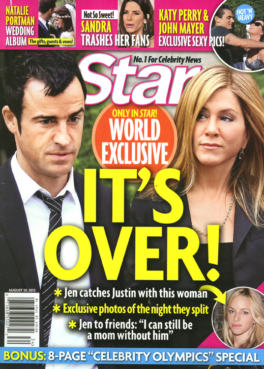 Worlds most mismatched couple splits for obvious reasons. If he doesn’t fly in in the next couple days for a photo op to dispell this then it’s true. He got his career boost, she got a little “bad girl man stealing” on her record to dispell her good girl image and everybody leaves happy! And Jen can go back to hanging out with Courtney Cox all the time…oh wait she already is doing that.