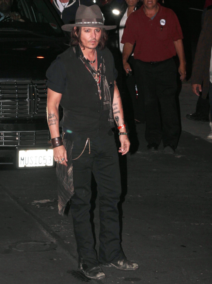 Several weeks ago, Johnny Depp made his first big solo outing as a newly single man. He went to Pink Taco, obviously. It was some kind of post-rock-show party with Aerosmith, and Johnny got himself all dolled up with eyeliner and scarves and hats and his typical stuff. I noted at the time that he was looking “less puffy” – which was a compliment. As it turns out, Depp had a reason for looking a bit better that evening – Johnny Depp, 49, was on the prowl once again, for the first time in more than a decade. I mean, I guess he’s been on the prowl a lot in the past year, but no one every believed those stories until Johnny and Vanessa officially confirmed their split. Still, it’s interesting to hear a story about Johnny’s game as a mid-life bachelor.