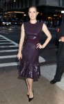 Amy Adams attended as well and wore an eggplant Giambattista Valli dress. This dress is acceptable but not very dramatic. I’d like to see Amy take a few more risks on the red carpet, but it’s not like she’s known as a fashion girl either. Perhaps if Amy had gone with loose, flowing curls, she could have made more of an impact here. Those pointy-toed shoes are pretty awful though.