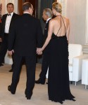 The South African-born blonde had slipped into a cascading black evening gown. The simple halter neck style showed off her toned, athletic figure to perfection. Smokey make-up and slicked back hair completed the look.