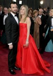 I liked Jen’s dress, but I agree that a loose chignon and a side part would have looked better…ooomph it up a bit. That hair down look is a bit tired on her now. Actually, I don’t that that poofy look suits her…she would have looked better with a slimmer dress imo. Her looks dry at top too. Hm. I don’t know, maybe she just can’t be bothered.