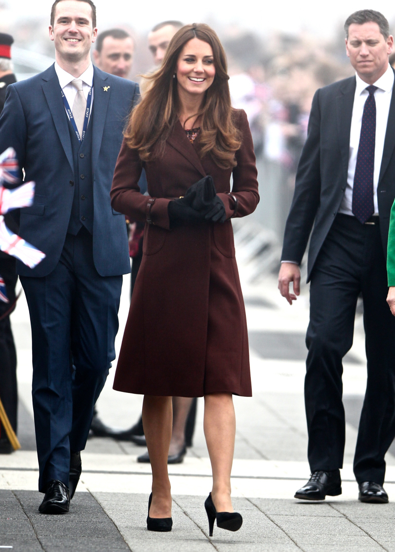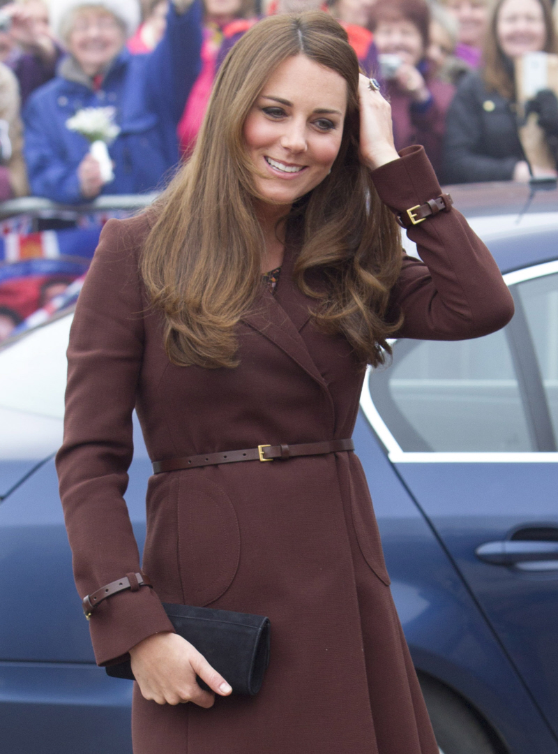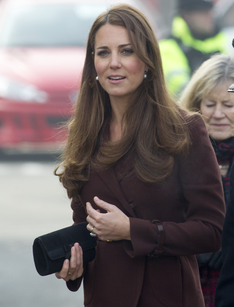 In yesterday’s Duchess Kate post, I forgot to mention something that has gone uncommented-upon for a few months (mostly because yesterday was only Kate’s second “public appearance” in 2013). Did you notice that she’s gotten a lot better about stroking her hair? She still does it, of course, because her hair (weave?) is her security blanket and she usually refuses to pull it back out of her face. But she’s gotten a lot better about fussing with it endlessly during her public appearances. A notable improvement! There, I said something nice.
