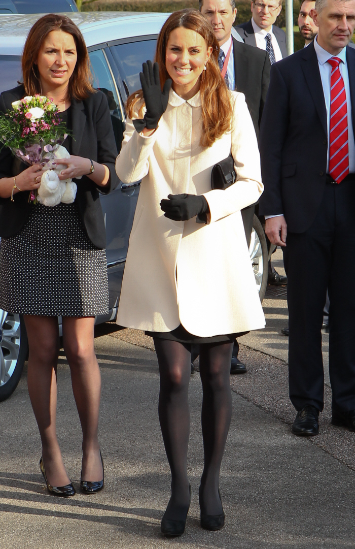 Great. Pregnant Kate is visiting a Child Bereavement Charity. I find that to be pretty insensitive. And I want to ask this question: why is it that the only thing that is ever discussed about this woman is what she wears? What’s up with that? Is her appearance the only thing that matters?