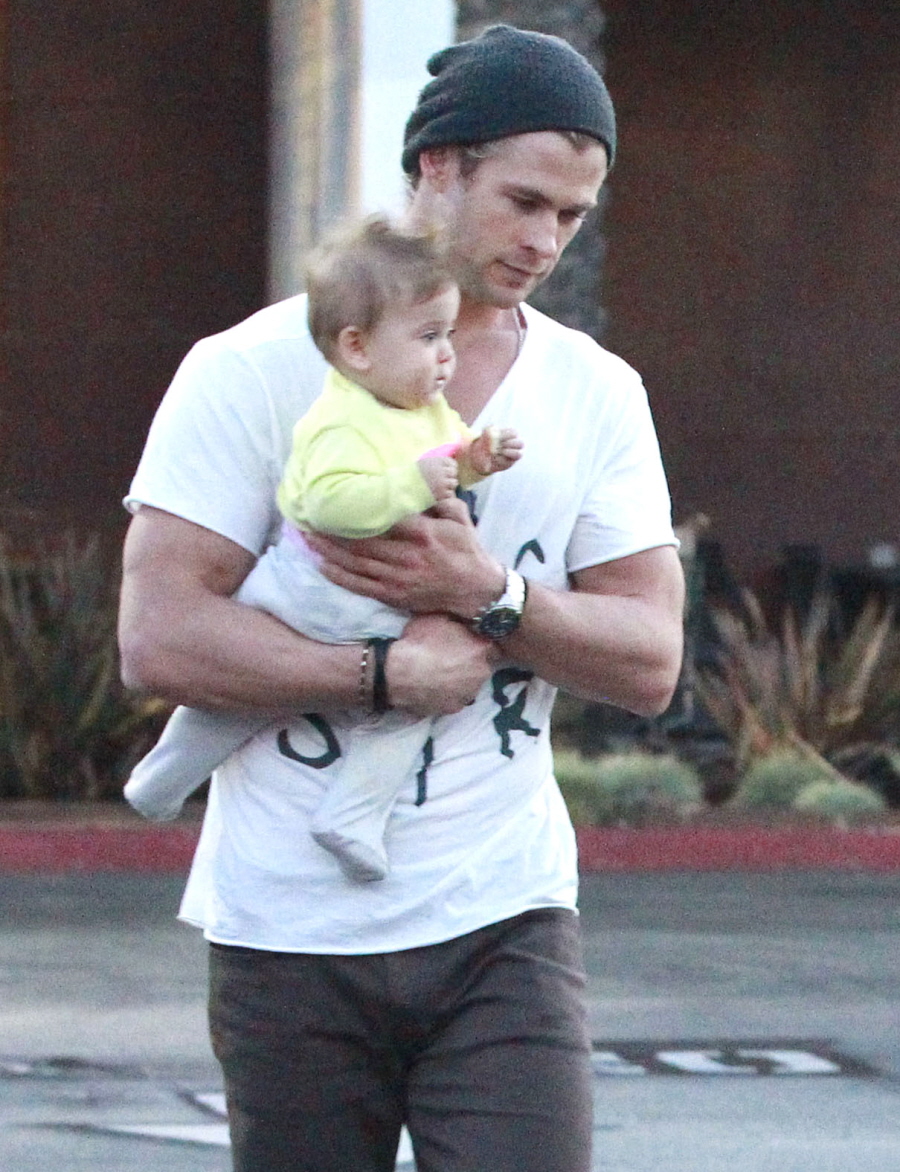 She’s so cute. I wanna cuddle with them both. Honestly these pap photos make me like him. I hated Thor and although he was okay acting wise, the movie just sucked. But these photos are so stinking cute and he’s so sweet with her.