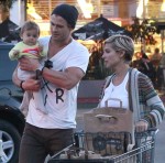 Here are some new photos of your boyfriend Chris Hemsworth and his wife and daughter. They were grocery shopping at Whole Foods on Monday. Does it strike anyone else that Chris Hemsworth and Elsa Pataky are becoming the new Garner-Afflecks? It seems like we get at least two “happy family” photo-ops from the Hemsworth-Patakys every week lately, and of course beautiful baby India Rose is always in tow. Elsa knows well enough that no one cares about her and that if she holds the baby, no one will buy the photographs. So Chris is always holding his baby girl, and the photos sell because ladies love nothing more than a giant dude with amazing arms cradling his daughter.