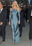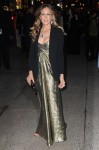 Here’s Sarah Jessica Parker in “vintage Vicky Tiel gold strapless gown styled with a Yeojin Bae black blazer and a Tiffany & Co. clutch and jewels.” I actually think SJP looks really good here. That blazer and dress is a good combo!