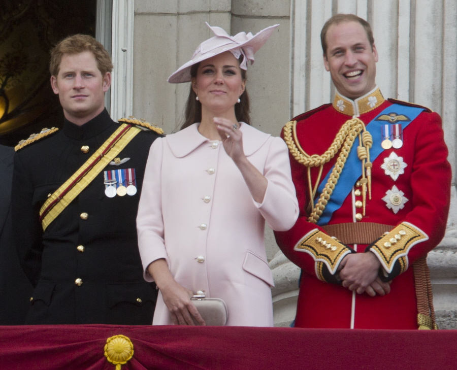 Here are some nice new photos of the last (officially now) public appearance for Duchess Kate before she gives birth. Last Thursday, Kate did her last solo appearance for a cruise liner christening (she’s the “godmother” of the ship), and Saturday’s activities are widely considered to be Kate last “for real now” appearance before giving birth next month. Kate, William and Harry (and everyone else) attended the Trooping the Colours parade for the Queen’s birthday. Everybody got to ride in carriages and all of the men (and HRH The Princess Royal, Princess Anne) got to wear their military finery.