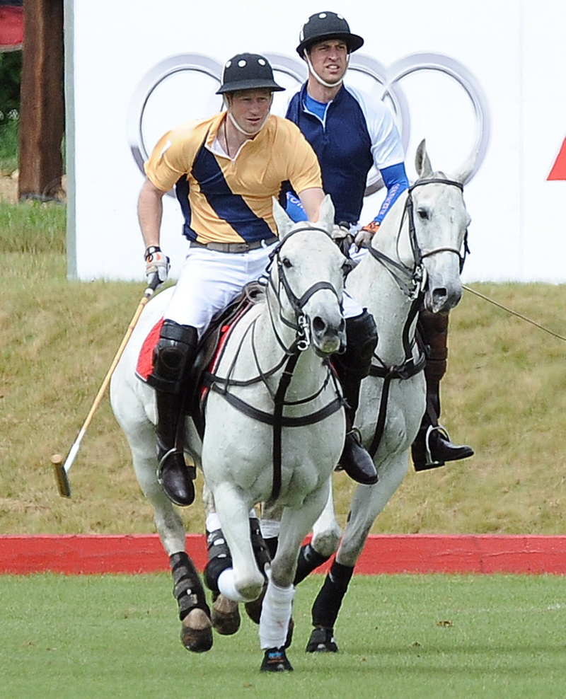 Anyway, these are new photos of Prince William and Prince Harry playing polo yesterday in Gloucestershire. This was their reward after doing the Trooping the Colours thing on Saturday. Kate is nowhere to be seen – I guess she didn’t want to watch her husband and her brother-in-law play polo. That’s weird, right? Usually Kate loves making those kinds of no-responsibilities appearances. Hopefully, she’s resting up and doing a spot of shopping before the baby comes. As for William and Harry – they both look natural on a horse. I’ve heard that Harry is a better polo player though.