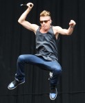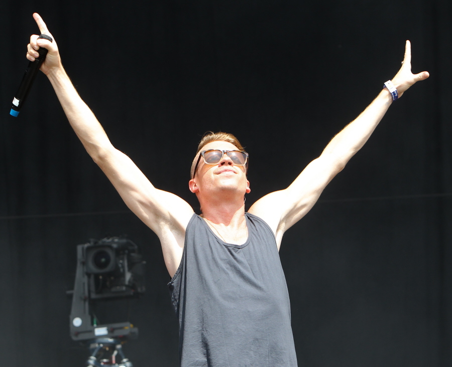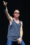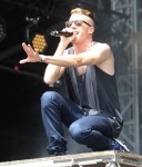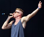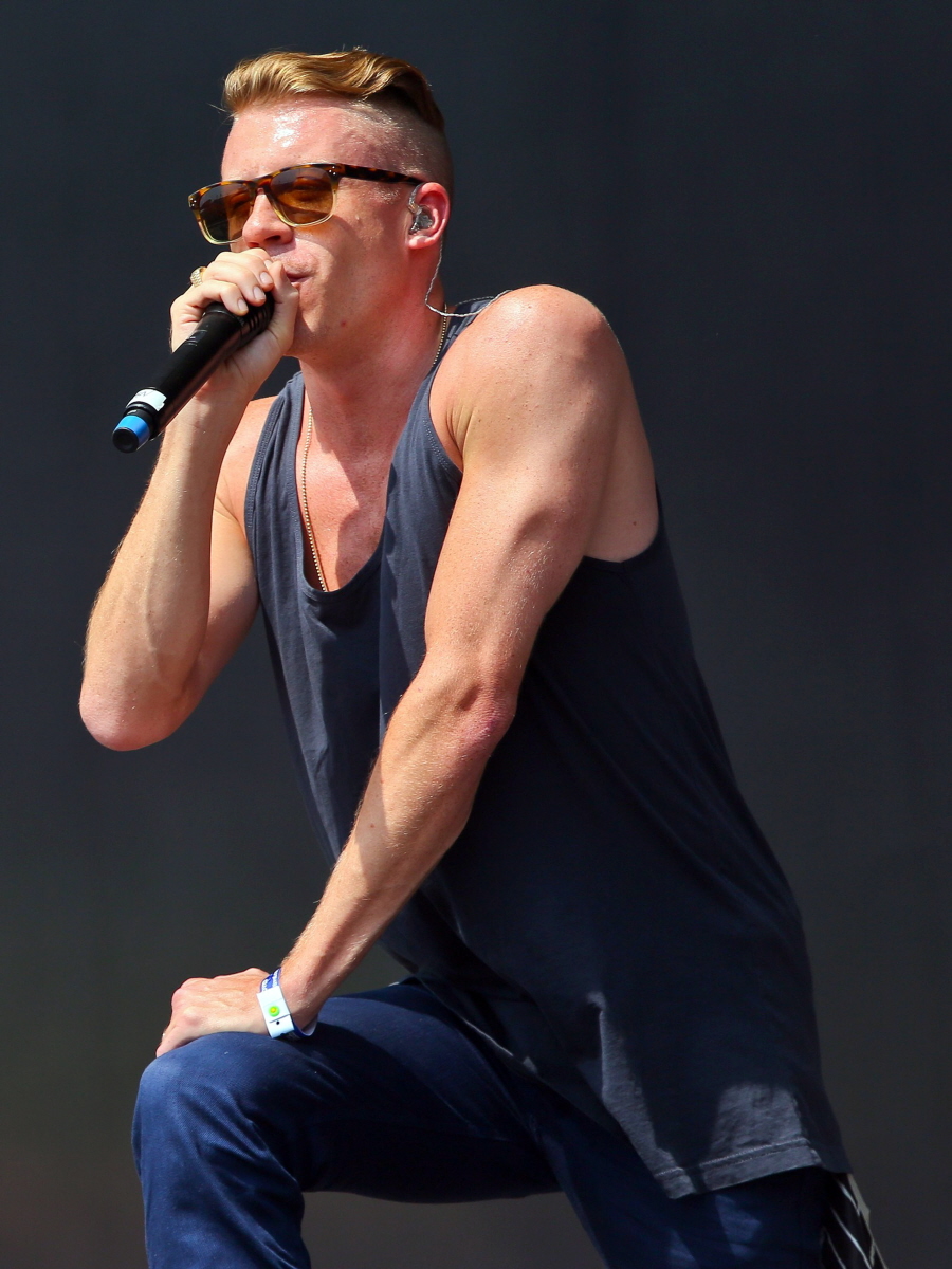 Here are some new photos of Macklemore in East London over the weekend, performing at the Yahoo Wireless festival/concert thing. We’ve never really devoted a post to Macklemore, which is a shame because he’s actually pretty awesome. All of a sudden, he just sort of appeared last year and he’s become a major rapper and hit maker. More interestingly, Macklemore doesn’t just rap about flossing and bitches, you know? “Thrift Song” is basically a song telling dudes that they’re douchebags for buying $200 shirts to impress girls. “Can’t Hold Us” is about… well, I’m not sure what it’s about, but it’s everywhere and it’s a fun song. And then there’s “Same Love” which just went platinum last week. It’s a song about homosexuality and love and gay-marriage and equality, and it’s just a really great song in which this rapper is actually blasting his own music genre for not standing up for human rights and gay rights.
