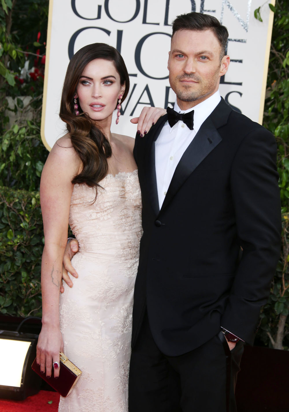Photos courtesy of WENN. Megan and Brian are shown in December 2012 and January 2013. She’s shown on set on 7-22-13