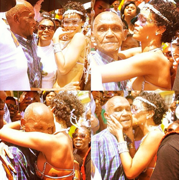 This sh-t just seems so weird, but I guess I’m not on the cutting edge and don’t really understand the trend. In other news, Rihanna is once again starring as the drunken star of the Bajan Kadooment Day parade just like she did two years ago when she was slightly heavier. Soon after that last parade, Rihanna went on a strict diet and lost those “extra” pounds, but she looks equally good at either weight. Here she is while cozying up to her Grandpa.