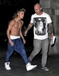 These are not photos of the situation at hand, but since they depict Bieber in his usual, pants-down clubbing mode (shown here in London in February), they come close enough. Apparently, Justin Bieber just can’t stay away from nightclubs even though — more often then not — he finds himself in the midst of a physical scuffle. Very early Sunday morning in Toronto, a club attendee enthusiastically tried to tackle Bieber only to end up getting taken down by Bieb’s security detail. TMZ has photos of the action where Bieber was “seen trying to defend himself, unleashing a fury of kicks.