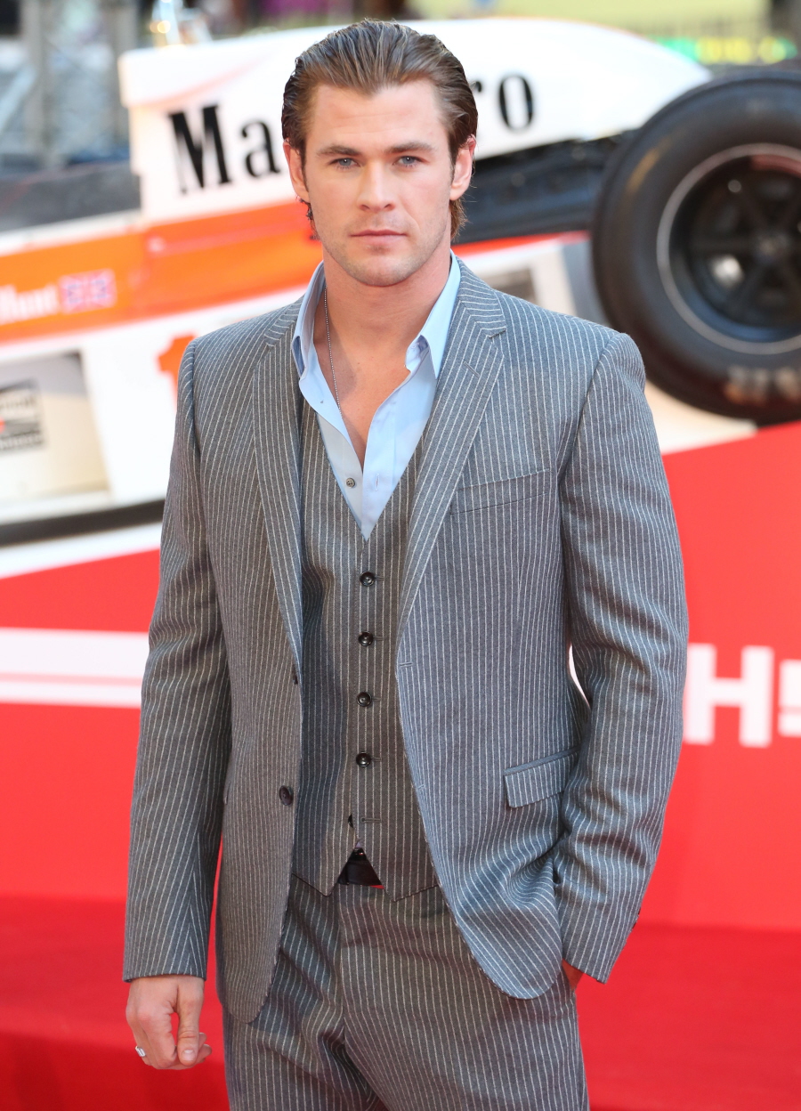 The Fifty Shades of Grey rumor: “I keep hearing that rumour too,” he says, adding that he hasn’t read the book. “My friend’s sister read it and was like, ‘Yuck, I can’t think of Chris like that’.” Not that he has been officially approached to play Grey. “I think everyone’s name is in that hat,” he says with typical self-deprecation, adding with a laugh: “Look: if I took on that role [after James Hunt] it would begin to seem like typecasting.”