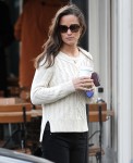 I have to say, I think Pippa looks pretty good in these pics. My first reaction was “Thank God she’s not bright orange.” This must be her “winter orange” shade. Still orange-ish, but definitely lighter than her summer shade. Plus, it helps when Pippa wears sunglasses. I’m not trying to be mean about it, but some people just look better in sunglasses and Pippa is one of those people. I also like her outfit – but I’m just pleased that her boots match her pants. She has an unfortunate habit of mixing her browns and blacks usually. I’m a Southern girl, and I really feel like you should not pair brown boots with black pants, tights or skirts. So, I’m just saying, I’m pleased with Pippa’s ensemble here.