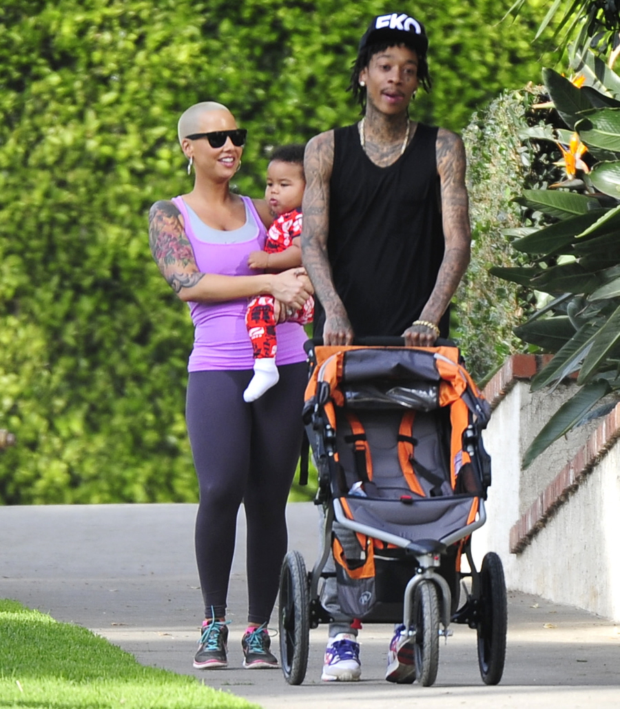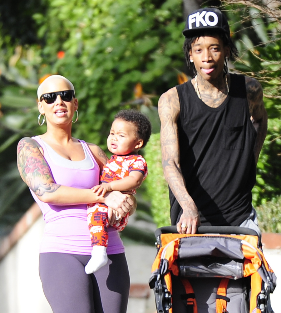Here are some cute new photos of Wiz Khalifa, Amber Rose and their adorable (and grumpy-faced!) son, Sebastian Taylor Tomaz. For some reason, I just love them. All of them. I really, really want Amber and Wiz to make it in the long run, and for some reason, I think they might. They genuinely seem to adore each other.