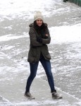 These are photos of Emmy Rossum on the LA set of Shameless (with snow!) as her Fiona character searches for drugs as she wears a house-arrest ankle bracelet. Fiona is on one amazing downward spiral this season. I am not up to speed on episodes (I only watched the first season so far), but Dustin at Pajiba has been discussing Fiona’s fate in detail.