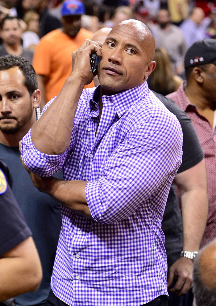 I love these photos of The Rock wearing gingham at a Miami Heat game last month. Gingham!