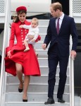 Now that all of the New Zealanders have gotten a good look at Duchess Kate’s Sunshine Beav, I was kind of hoping we would have non-stop photos from the royal tour. Not so much. So, I’m using some additional photos from William, Kate and George’s arrival in New Zealand from yesterday. I made an effort to use photos that I didn’t use yesterday! There are also about a million stories about the minutiae of this or that (I saw an article about Prince George’s baby shoes, for goodness sake), but I’m more interested in the basics: staffers, baby wranglers and clothes. The Telegraph had an excellent piece about what went down on the plane and beyond: