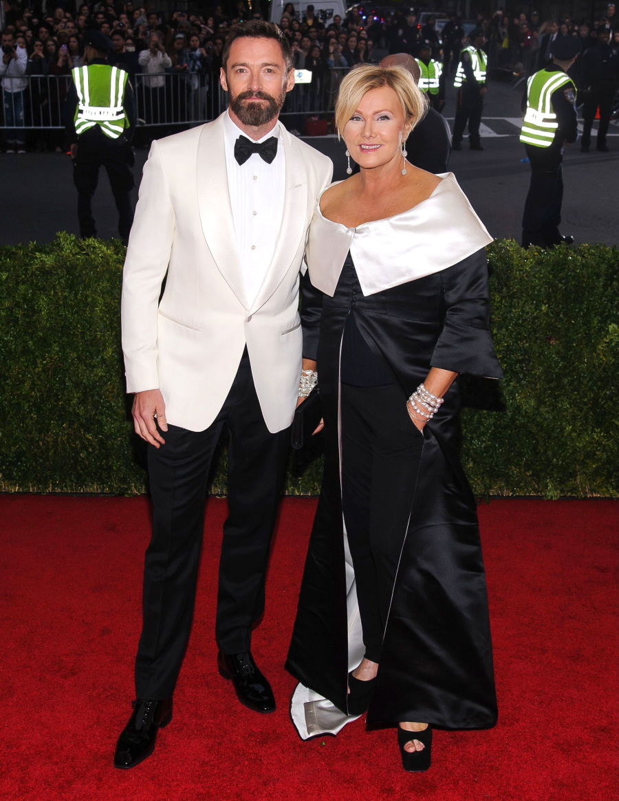 Hugh looks pretty gorge though I hate the beard. As for his wife…I just feel bad for her at this point. I get that it’s hard to be a non-famous partner but she really can’t dress to save her life.