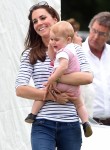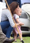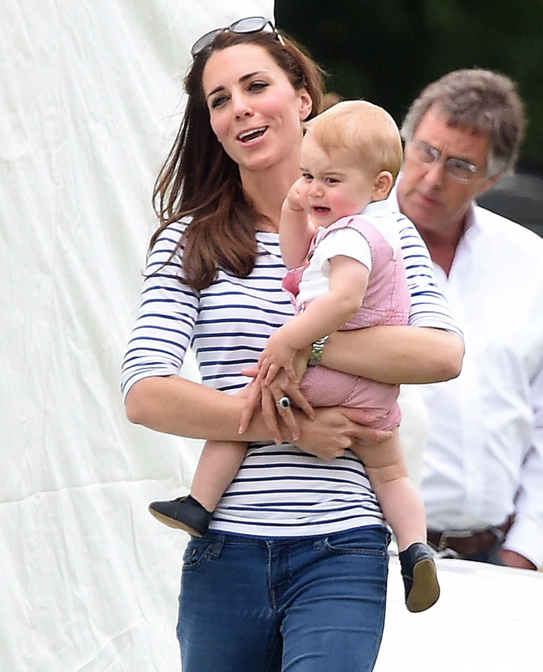 Prince George is such a star! So grumpy, so willful, so big. Such a bruiser. Duchess Kate finally got invited to one of Prince William’s polo games, and she brought along Prince George, who turns one year old in about five weeks. George is already walking, although it seems like he’s still more comfortable crawling. You can see more photos here at the Daily Mail – there are some really cute ones where it looks like George is trying to run away from his mom. There are also some pics where he’s just discovered his newest best friend, a horse.
