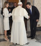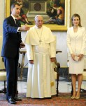 There are a limited number of women who can wear white, and the Spanish Queen is one of them (this is not a privilege extended to any of the Protestant queens though). It’s also been the case that the current Holy Father appears to be encouraging less formal dress for his audiences. This would be in keeping with his emphasis on service to the poor, rather than the trappings of his office.