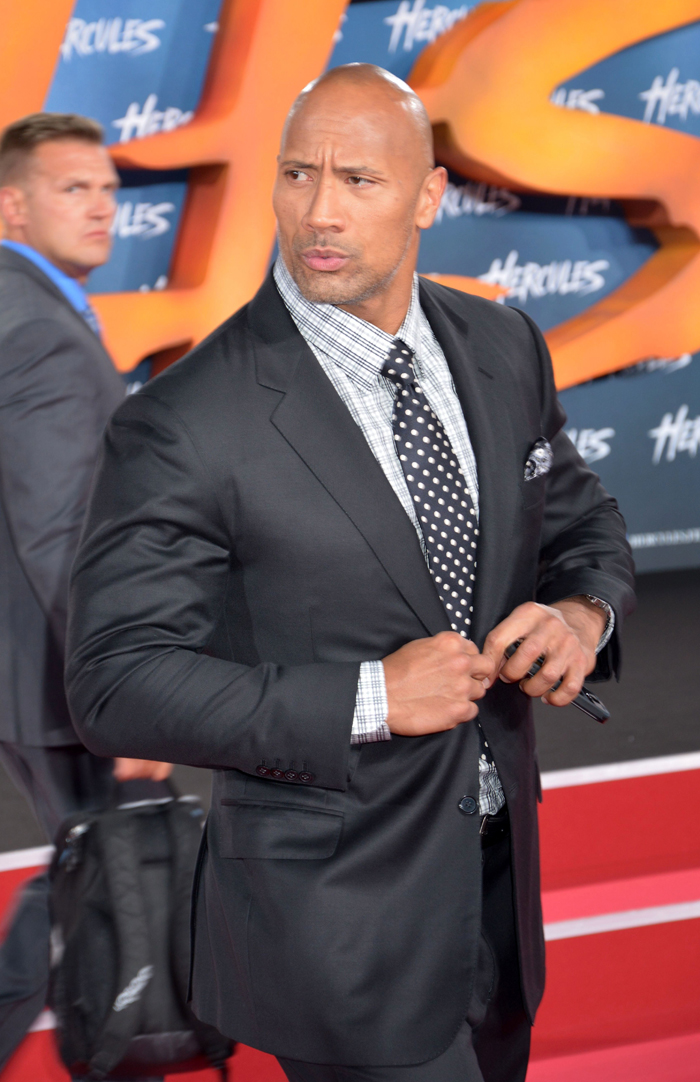Side note, on fashion – if The Rock, a super macho character, can show up in a great, properly fitted suit, what with his unusually (deliciously) large frame, other male stars have no excuse to show up looking sloppy or wearing jeans on the RC.