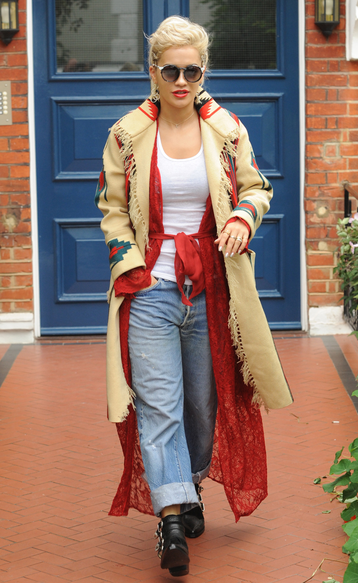 These are photos of Rita Ora’s street style over the past few days. She (or someone else) puts a ton of effort in what she wears on her pap walks. She’s a pop star, and the paparazzi help create a pop star’s image. The symbiotic relationship between stars and the photogs cannot be denied. Rita’s style is questionable, but it’s all about grabbing attention.